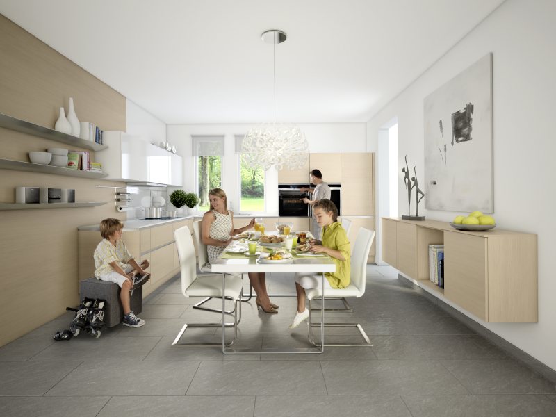 Существует два основных способа размещения кухонной мебели в пространстве: линейный и угловой. Конструкция кухонь Nolte Kuechen позволяет создать оптимальную обстановку как линейной, так и угловой кухни. При этом не зависимо от того, как будут располагаться шкафчики и прочие мебельные элементы, кухня будет максимально комфортной и всегда соответствовать правилу: расстояние от локтя до поверхности равняется 15 см.